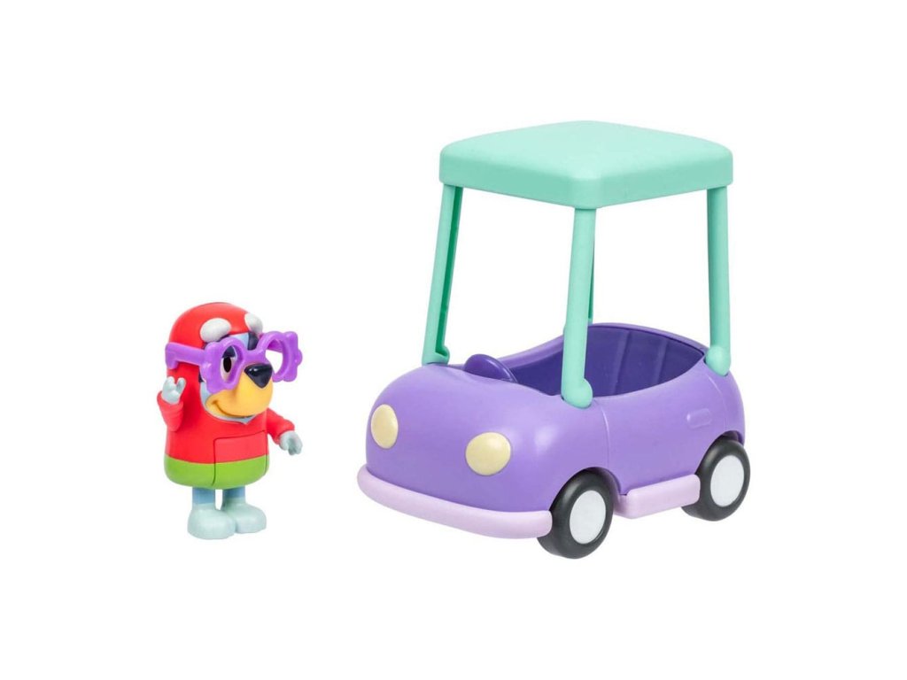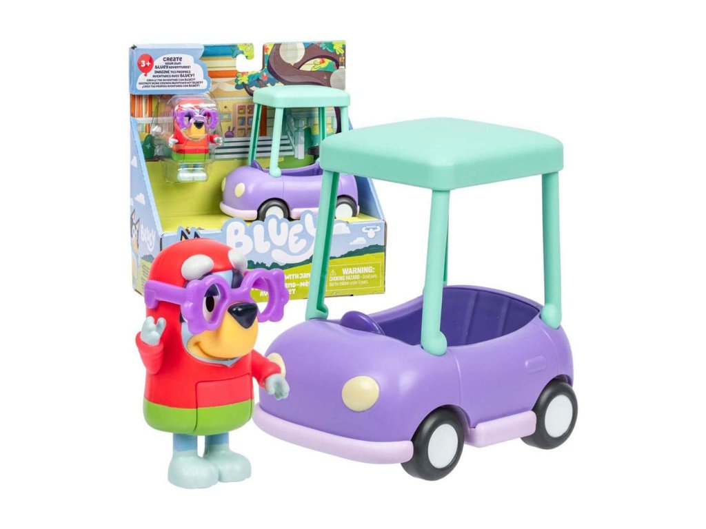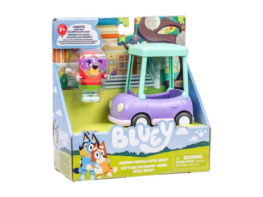 Dvoudílná hra s figurkou Janet a Babiččiným autem. Sada obsahuje: - 1 x Babiččino auto - 1 x 7,6 cm figurku Janet. Může být kombinováno s ostatními 6-7,6 cm figurkami Bluey (prodává se samostatně).