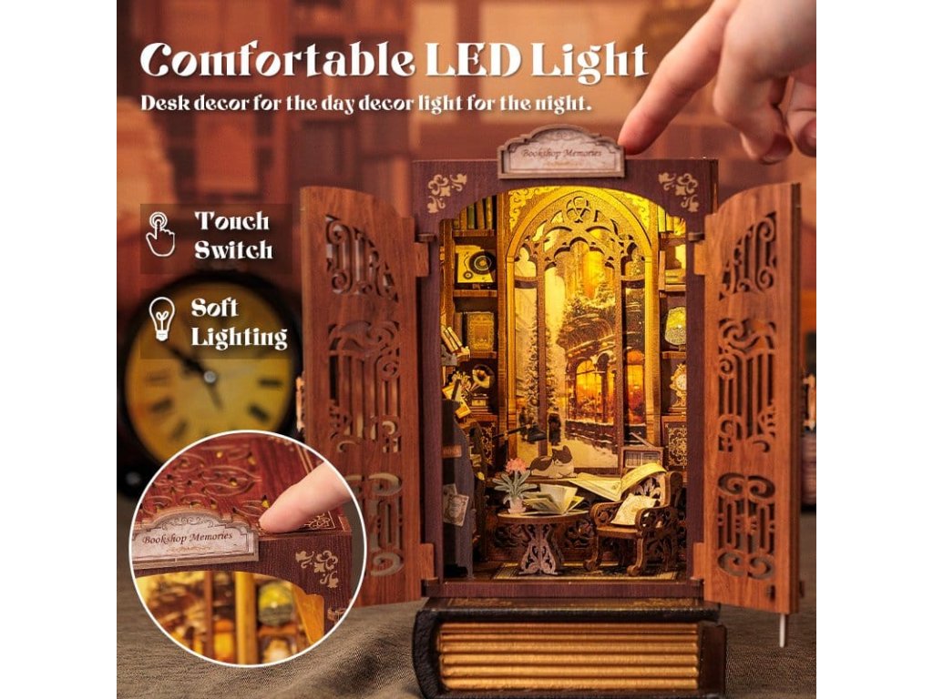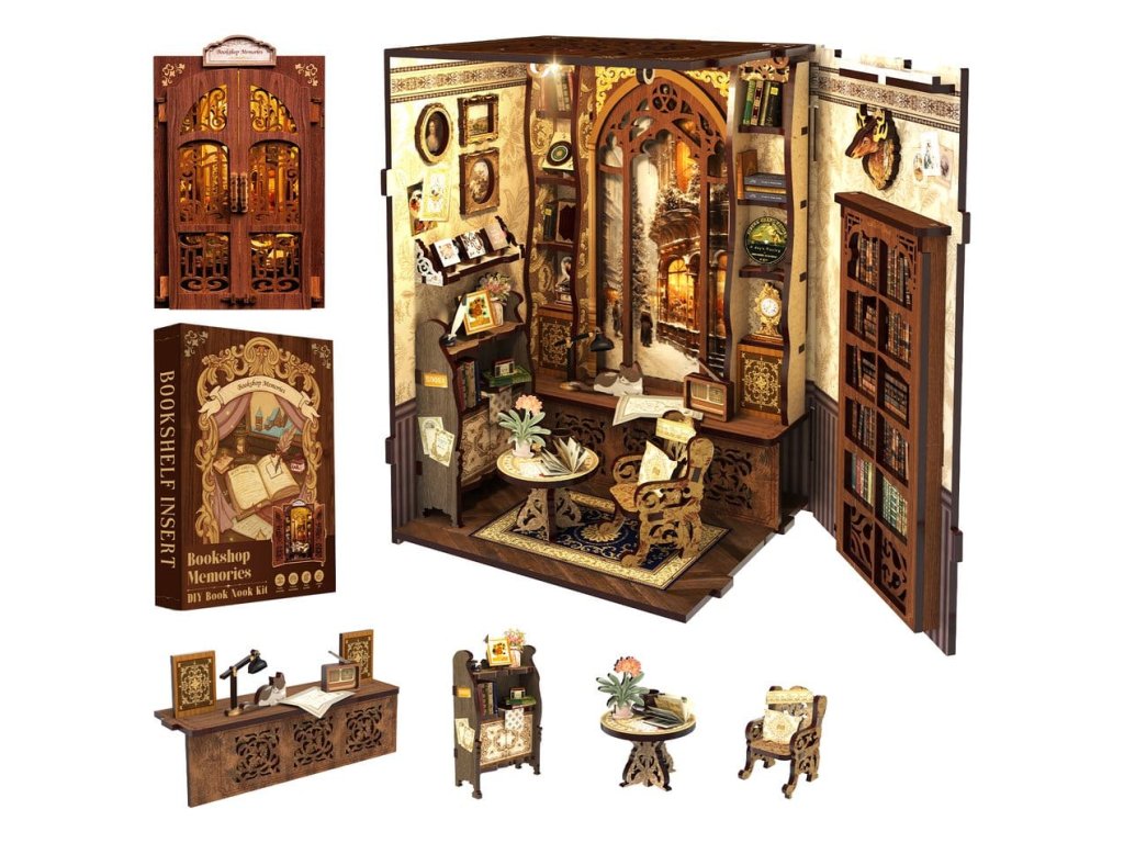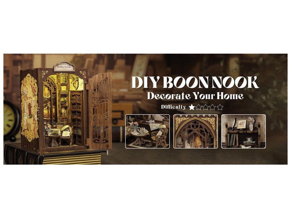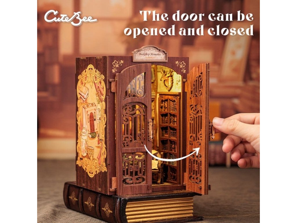 Tvořivá úniková hra mezi vašimi knihami - CuteBee Book NooksCuteBee Book Nooks je více než dekorativní police - jsou to pohlcující tvořivé zážitky pro děti, rodiny a dospěláky, doporučené pro věk 12 a více let. Navržené jako detailní 3D dřevěné puzzle, nabízejí klidný, soustředěný stavební proces, který povzbuzuje k bezobrazovkovému, stresu snižujícímu času pro sebe.Každý model sleduje jasnou a logickou strukturu s lehkým pochopením pokynů, vytváří rychlé úspěšné okamžiky po celou dobu stavby. Rovnováha mezi angažující montáží a krásným konečným výsledkem přináší hluboký pocit uspokojení a relaxace. Perfektní pro fanoušky LEGO, stavebních bloků, měřítkových modelů a japonských modelových sad.Dřevěné části vyřezávané laserem poskytují prémiový pocit s přesnými spoji, čistými hranami a kvalitním povrchovým úpravami. Díky systému Easy-Snap lze většinu prvků sestavit s minimálním lepidlem, což činí proces přívětivým pro začátečníky, čistým a reverzibilním.Rozsáhlý výběr témat včetně fantasy, středověkých světů, magie, asijsky inspirovaných scén a útulných prostředí, CuteBee Book Nooks nabízejí silnou sběratelskou a přeprodejní hodnotu - zřejmě ne jde o jednorázovou nákupní položku.Poznámka: Baterie a dřevěné lepidlo nejsou součástí balení.