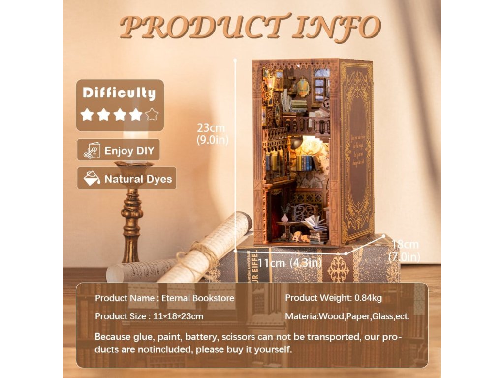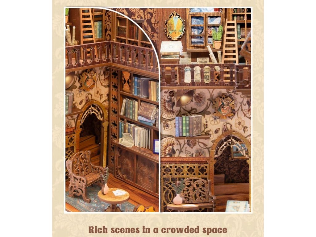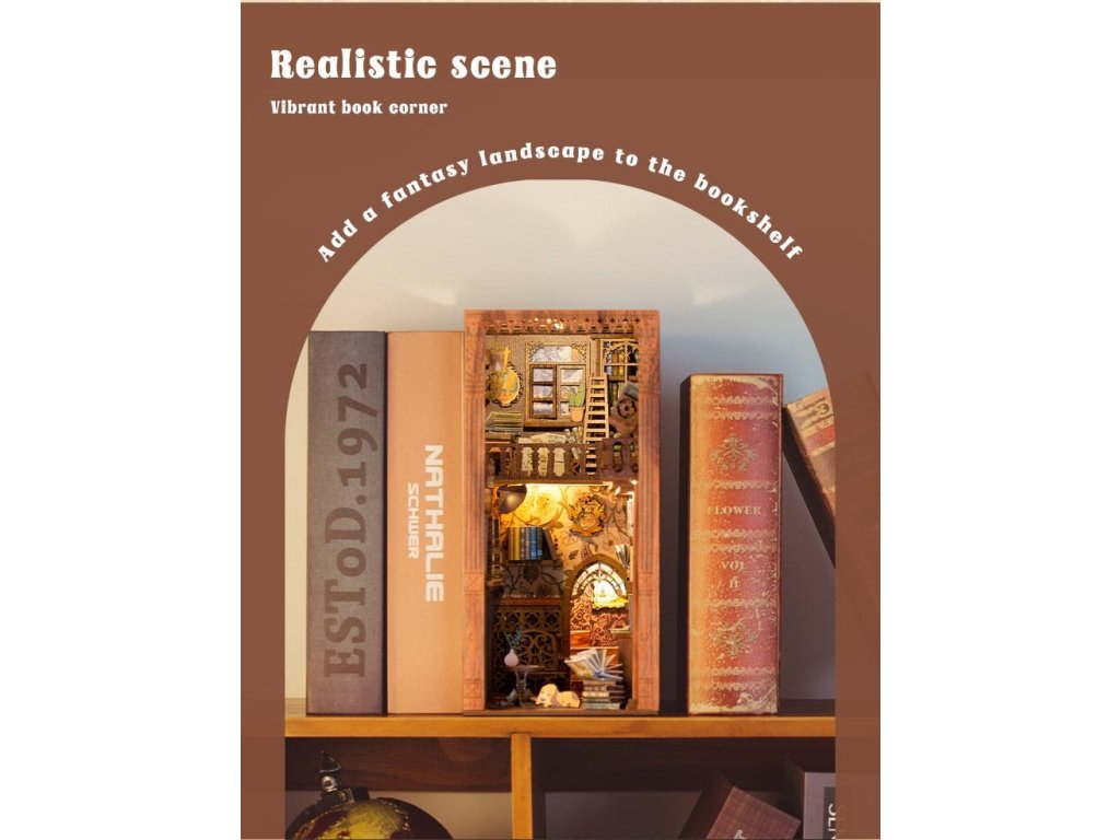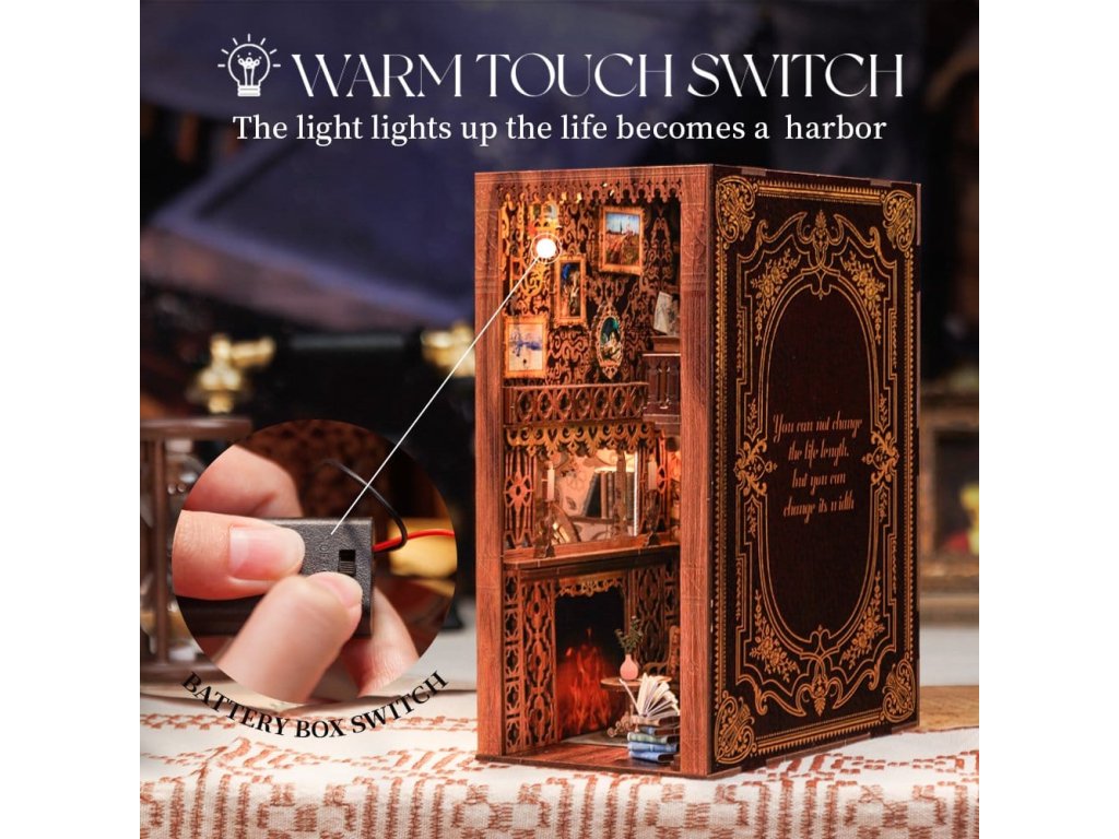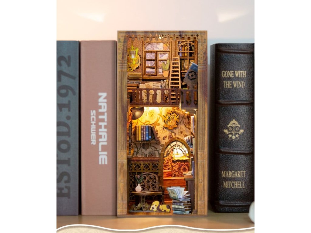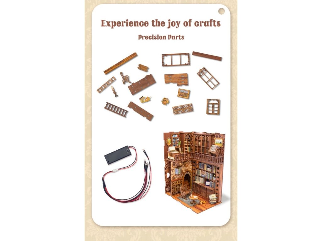 Kreativní únik mezi vašimi knihami - Knižní koutky CuteBee. CuteBee Knižní koutky jsou více než dekorační kusy poliček – jsou to pohlcující kreativní zážitky pro děti, rodiny a dospělé, doporučené pro věk 12 let a více. Navržené jako detailní 3D dřevěné skládačky, nabízejí klidný, soustředěný proces stavby, který povzbuzuje k obrazovce bez stresu, snižuje čas pro sebe. Každý model má jasnou a logickou strukturu s lehkým pochopením instrukcí, vytváří rychlé momenty úspěchu během stavby. Rovnováha mezi atraktivní montáží a krásným konečným výsledkem přináší hluboký pocit uspokojení a relaxace. Perfektní pro fanoušky LEGO, stavebních bloků, modelů, japonských stavebnic. Laserem řezané dřevěné díly poskytují prémiový pocit s přesnými prvky, čistými hranami a vysoce kvalitním provedením. Díky systému Easy-Snap lze většinu prvků sestavit s minimem lepidla, což zjednodušuje proces pro začátečníky, udržuje ho čistý a obratitelný. S širokou škálou témat včetně fantasy, středověkých světů, magie, scén inspirovaných Asií a útulných prostředí, CuteBee Knižní koutky nabízejí silnou sběratelskou a přeprodejovou hodnotu - rozhodně nejde o jednorázový nákup. Poznámka: Baterie a dřevěné lepidlo nejsou součástí.