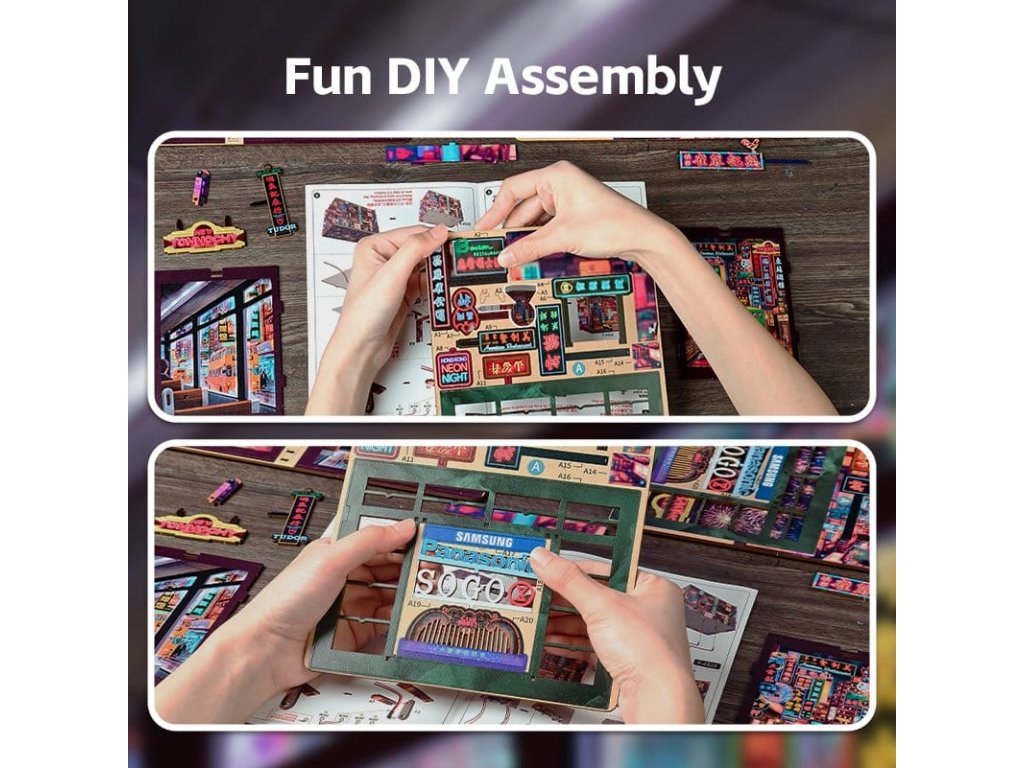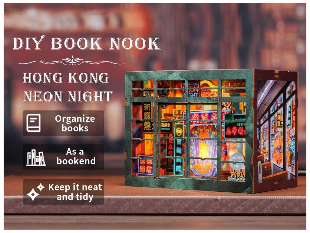 Kreativní únik mezi knihami - Knížkové koutky CuteBee. Knížkové koutky CuteBee jsou více než dekorativní police - jsou to ponořující kreativní zážitky pro děti, rodiny a dospělé, doporučené od 12 let výše. Navržené jako detailní 3D dřevěné puzzle, nabízejí klidný, soustředěný stavební proces, který podporuje čas bez obrazovek a snižuje stres. Každý model sleduje jasnou a logickou strukturu s lehce srozumitelnými návody, vytvářející rychlé momenty úspěchu v průběhu stavby. Rovnováha mezi zapojenou montáží a krásným konečným výsledkem přináší hluboký pocit uspokojení a odpočinku. Perfektní pro fanoušky LEGO, stavebních kostek, modelů v měřítku a japonských stavebnic. Laserem řezané dřevěné díly poskytují prémiový pocit s přesnými spojami, čistými hranami a vysoce kvalitním dokončením. Díky systému Easy-Snap je možné většinu prvků sestavit s minimem lepidla, což činí proces přátelský pro začátečníky, čistý a reverzibilní. S širokou škálou témat, včetně fantasy, středověkých světů, magie, asijsky inspirovaných scén a útulných prostředí, nabízejí Knížkové koutky CuteBee silnou sběratelskou a zbytnou hodnotu - jednoznačně to není jednorázová položka k nákupu. Poznámka: Baterie a dřevěné lepidlo nejsou součástí balení.