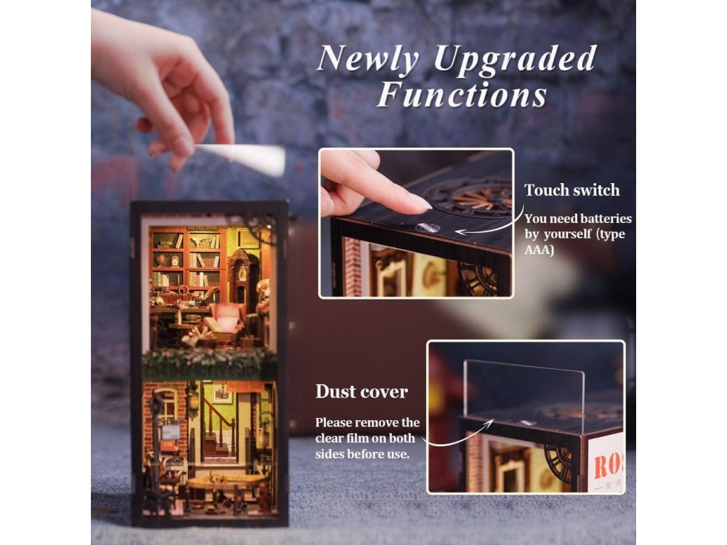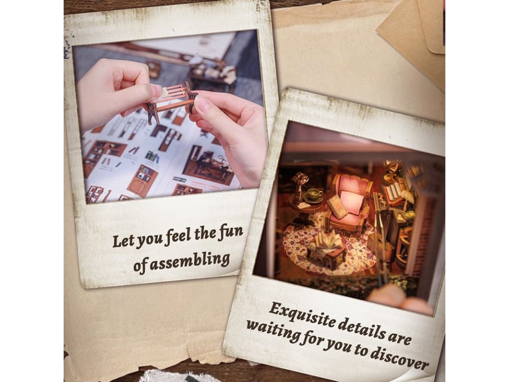 Kreativní únik mezi vašimi knihami - Koutky pro knihy CuteBee. Koutky pro knihy CuteBee jsou více než dekorativní police - jsou to poutavé kreativní zážitky pro děti, rodiny a dospělé s dětskou duší, doporučené pro věk 12 let a výše. Jsou navrženy jako detailní 3D dřevěné puzzle, nabízejí klidný, soustředěný stavební proces, který podporuje bezobrazovkový, stres snižující čas pro sebe. Každý model sleduje jasnou a logickou strukturu s lehkými instrukcemi, což vytváří krátké momenty úspěchu během stavby. Rovnováha mezi zajímavou montáží a krásným finálním výsledkem přináší hluboké pocit uspokojení a relaxace. Perfektní pro fanoušky LEGO, stavebních kostek, modelů v měřítku a japonských stavebnic. Laserem řezané dřevěné díly poskytují prémiový pocit s přesnými spoji, čistými hranami a kvalitním provedením. Díky systému Easy-Snap mohou být většina prvků sestavena s minimálním množstvím lepidla, což z procesu činí přátelský pro začátečníky, čistý a reversibilní. S širokou škálou témat, včetně fantasy, středověkých světů, magie, scén inspirovaných Asií a útulných prostředí, nabízejí Koutky pro knihy CuteBee silnou sběratelskou a prodejní hodnotu - zřejmě nejedná se o jednorázovou položku k nákupu. Poznámka: Baterie a dřevěné lepidlo nejsou součástí balení.