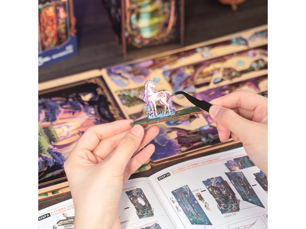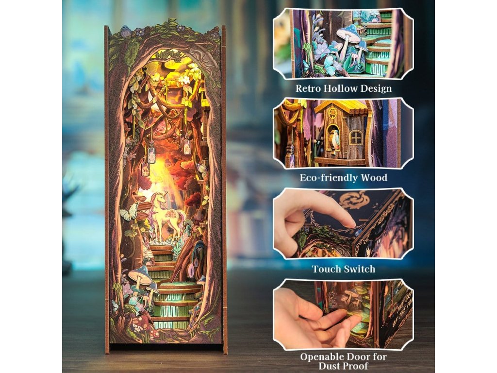 Tvořivý únik mezi vašimi knihami - Roztomilé Knížkové koutky CuteBee. Knížkové koutky CuteBee nejsou jen dekoračními kusy na polici - jsou to ponořené tvořivé zážitky pro děti, rodiny a dětské dospělé, doporučené pro věk 12 a více let. Navržené jako detailní 3D dřevěné puzzle, nabízí klidný, soustředěný proces stavby, který podněcuje bezobrazovkový, stres redukující čas pro sebe. Každý model sleduje jasnou a logickou strukturu s lehce srozumitelnými instrukcemi, vytvářejíc při stavbě rychlé okamžiky úspěchu. Rovnováha mezi poutavou montáží a krásným konečným výsledkem přináší hluboký pocit uspokojení a relaxace. Perfektní pro fanoušky LEGO, stavebnice, modely v měřítku a japonské modelové sady. Laserem řezané dřevěné díly poskytují prémiový pocit s přesnými spoji, čistými hranami a kvalitním dokončením. Díky systému Easy-Snap lze většinu prvků sestavit s minimem lepidla, což proces činí přátelským pro začátečníky, čistým a reverzibilním. S širokou škálou témat včetně fantasy, středověkých světů, magie, asijsky inspirovaných scén a útulných prostředí, Knížkové koutky CuteBee nabízejí silnou sběratelskou a přeprodejní hodnotu - jednoznačně nejedná se o položku určenou k jednorázové koupi. Poznámka: Baterie a dřevěné lepidlo nejsou součástí balení.
