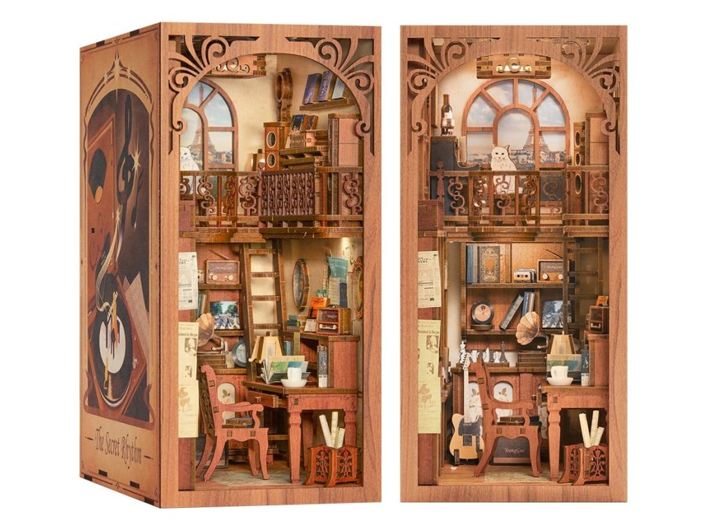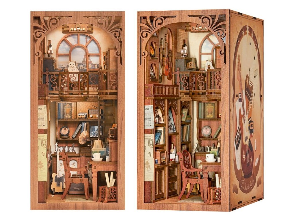 Kreativní únik mezi vašimi knihami - knížkové koutky CuteBee. Knížkové koutky CuteBee jsou více než dekorativní police - jsou to pohlcující kreativní zážitky pro děti, rodiny a dospělé, doporučené pro věk 12 let a výše. Navržené jako detailní 3D dřevěné puzzle, nabízejí klidné, soustředěné stavění, které podporuje čas bez obrazovky a redukuje stres. Každý model sleduje jasnou a logickou strukturu s lehkým pochopením pokynů, vytváří krátké momenty úspěchu během stavby. Rovnováha mezi poutavou montáží a krásným konečným výsledkem přináší hluboký pocit spokojenosti a relaxace. Perfektní pro fanoušky LEGO, stavebnic, modelů v měřítku a japonských modelových sad.Laserem řezané dřevěné díly dodávají pocit prémiové kvality díky preciznímu zapadnutí, čistým hranám a vysoce kvalitnímu dokončení. Díky systému Easy-Snap lze většinu prvků sestavit s minimem lepidla, což činí proces přívětivým pro začátečníky, čistým a reverzibilním. S širokou škálou témat včetně fantasy, středověkých světů, magie, scén inspirovaných asijskou kulturou a útulných prostředí, nabízejí knížkové koutky CuteBee silnou sběratelskou a prodejní hodnotu - jasně nejedná se o jednorázový nákup. Poznámka: Baterie a dřevěné lepidlo nejsou součástí balení.
