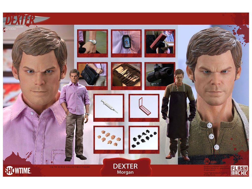 "Lidé si myslí, že je zábavné předstírat, že jsi příšera. Já trávím svůj život předstíráním, že nejsem." Z oceňované kriminální dramy Dexter přichází oficiálně licencovaná akční figurka Dexter Morgan v šesté měřítku. Tento vysoce detailní sběratelský předmět strašlivě zachycuje dvojí život soudního technika. S dvěma hlavami, dvěma sadami oblečení a různými doplňky ho můžete vystavit jako Dextera; zákonného občana, nebo jako temného pasažéra; jeho hluboce neústupné alter ego. "Jsem velmi uhlazená příšera".