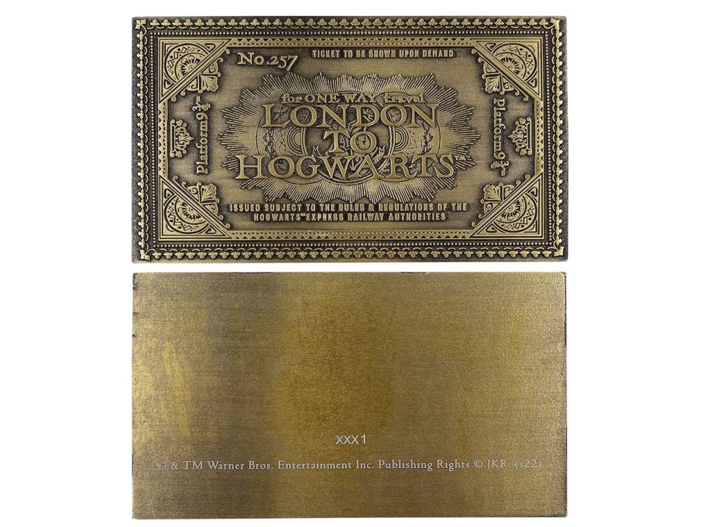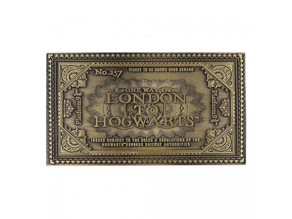 Vydejte se na nástupiště 9 3/4 s vaší vlastní replikou lístku na vlak do Hogwartsu vyrobené z kovu s antickým zpracováním. Tento oficiálně licencovaný sběratelský předmět Harry Potter je silně puklý, vysoce detailní, limitovaný na pouhých 9995 kusů po celém světě, individuálně číslovaný a doprovázený stojanem pro zobrazení v rámci jeho prezentace.