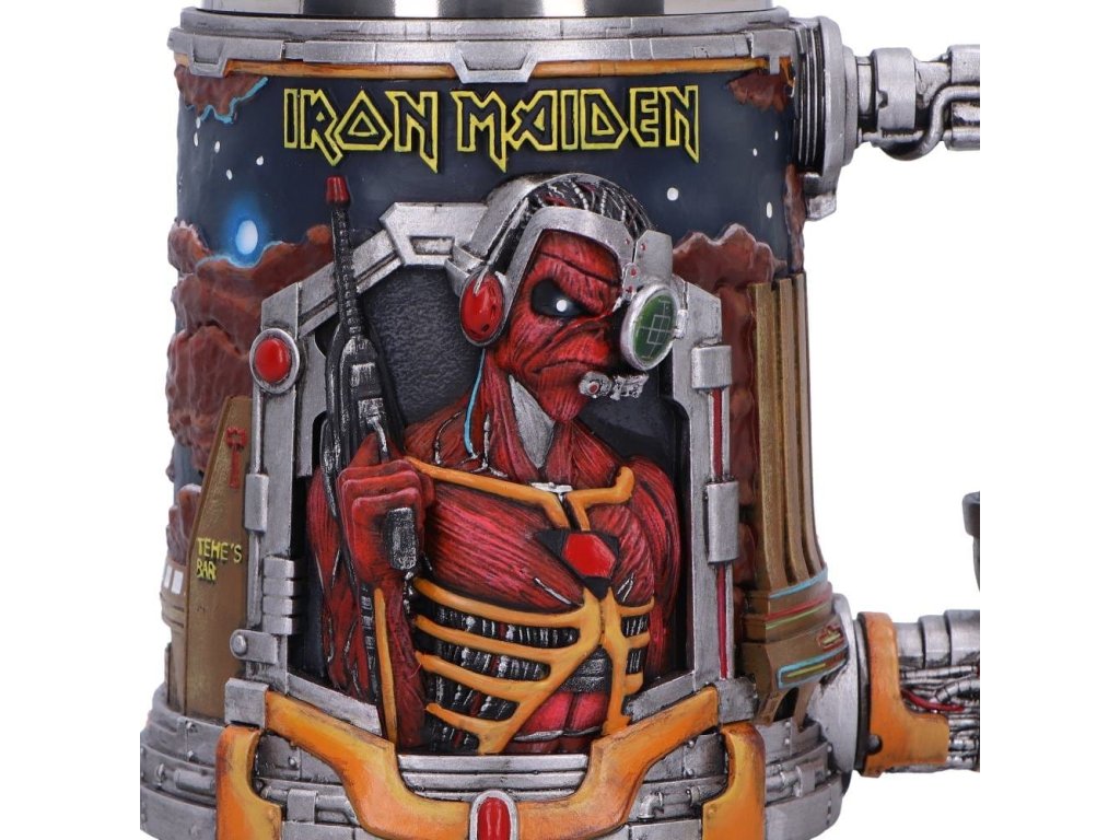 Oficiálně licencovaný tankard Iron Maiden inspirovaný ikonickým obalem alba Somewhere In Time. Vysoká detailnost 3D sochaření, futuristické sci-fi prvky a Eddie ve své kyberneticky vylepšené formě obklopující design tankardu. Baleno v barevné značkové dárkové krabici, ideální pro vystavení nebo jako dárek pro fanoušky metalu. Skvělý pro sběratele Iron Maiden, milovníky heavy metalu a fanoušky klasických rockových suvenýrů. Připijte si tankardem na historii metalu s tímto impozantním sběratelským kusem. - Velikost: přibližně 17,5 cm.Doplňkové parametry