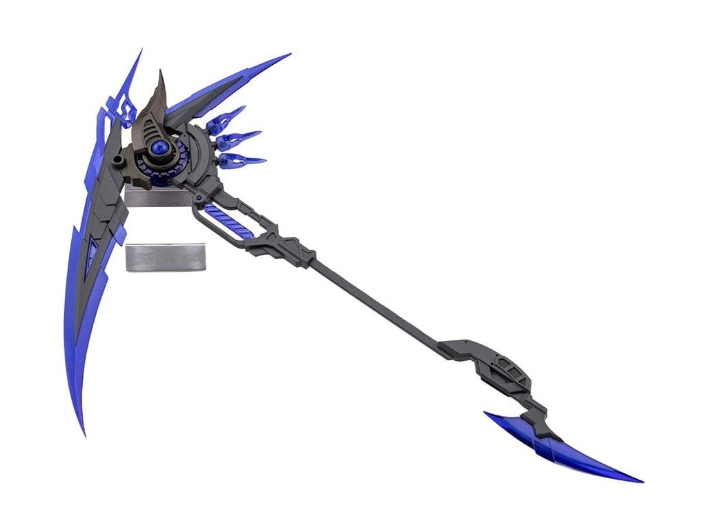 Nadměrná zbraň inspirovaná kosou démona. Démonický kosák nabízí hojnost průhledných částí. Jeho ostře řezaný tvar a výrazná průhlednost se kombinují s jeho impozantní velikostí a vytváří ohromující přítomnost. Zbraň lze také přeformovat do několika tvarů, jako je dýka, meč nebo oštěp. Tato položka nabízí vysokou herní hodnotu, spojuje krásu a přizpůsobitelnost.Specifikace modelu:- Strašlivý, ale krásný design, který kombinuje ostré linie s démonickými dekoracemi, využívá mnoho průhledných částí.- Lze transformovat z režimu kosy do několika forem zbraní, jako je dýka, meč a oštěp prostřednictvím přeformulace.- Hlavní jednotka na montáž čepele zahrnuje vnitřní kloub, který umožňuje jemné nastavení úhlu.- Rohovité části na stranách hlavní jednotky a tři průhledné části na zadní straně využívají 3mm konektory a mohou být také použity jako modifikace dílů.- Rukojeť také využívá 3mm spojení, což umožňuje uspořádání designu pomocí položek jako jsou Alnair Rod nebo Pole Weapon Set.- Pomocí přiložených spojovacích částí lze velkou čepel a dýku spojit do dvojčete. S dvěma kitsety lze vytvořit ještě větší dvoubřitý meč.- Vytvořeno ve dvou barvách: průhledná modrá pro čepel a šedá pro rámeček.Design byl proveden serou, která je dobře známa pro své stylové mecha designs, která stála i za sériemi jako Forme Arms, Stride Rifle a Customize Blade.* Specifikace se liší od prototypu ukázaného na akci.V balení:- 1 x Velká čepel - 1 x Hlavní jednotka - 1 x Dlouhá rukojeť- 1 x Dýka - 1 x Kloubní části
