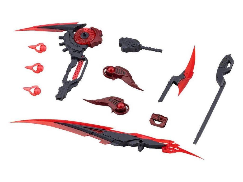 Obří zbraň inspirovaná kosou démona. Děsivá kosa zdobená mnoha průhlednými částmi. Její ostrý tvar a nápadnou průhlednost dokresluje její impozantní velikost, která vytváří ohromující význam. Zbraň lze také přeformátovat do několika tvarů, jako je dýka, meč nebo oštěp. Tento produkt nabízí vysokou hodnotu hry, když spojuje krásu s možností úprav. Modelové specifikace: - Hrozivý, ale zároveň krásný design, který kombinuje ostré linie s démonickými ozdobami, využívající mnoho průhledných částí. - Může se transformovat z režimu kosy do několika zbrojních forem jako dýka, meč a oštěp prostřednictvím rekonfigurace. - Hlavní jednotka montáže čepele obsahuje interní kloub, který umožňuje jemné úpravy úhlu. - Rohlíkové části na stranách hlavního těla a tři průhledné části na zadní straně využívají 3mm konektory a lze je také použít jako modifikační části. - Rukojeť také používá 3mm spojení, což umožňuje designové uspořádání pomocí předmětů jako je Alnair Rod nebo Pole Weapon Set. - S pomocí přiložených kloubů lze velkou čepel a dýku spojit do dvojčete. S dvěma stavebnicemi lze vytvořit ještě větší meč s dvojitou čepelí. - Tvarován ve dvou barvách: průhledná červená pro čepel a černá pro rámec. Design vytvořil sera, která je dobře známá pro své elegantní mecha designy, kterou stála také za sérií jako Forme Arms, Stride Rifle a Customize Blade. * Specifikace se liší od prototypu ukázaného na akci. Součástí balení: - 1 x velká čepel - 1 x hlavní jednotka - 1 x dlouhá rukojeť - 1 x dýka - 1 x spojovací díly.