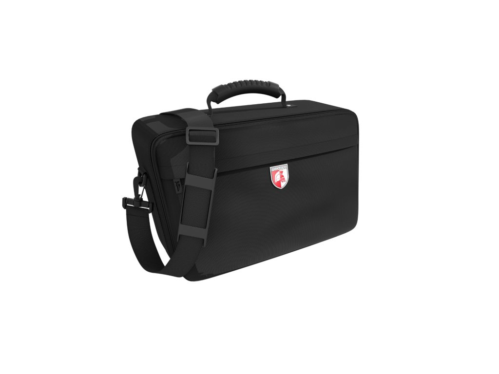 Kufr Feldherr MAXI s logem, prázdný, vhodný pro přenášení a uložení miniatur. Pojme až 180 miniatur. Je z odolného materiálu se zesílenými st ěnami a dnem, na přední straně má kapsu pro knihy a další příslušenství. Vnitřní výška 160mm.