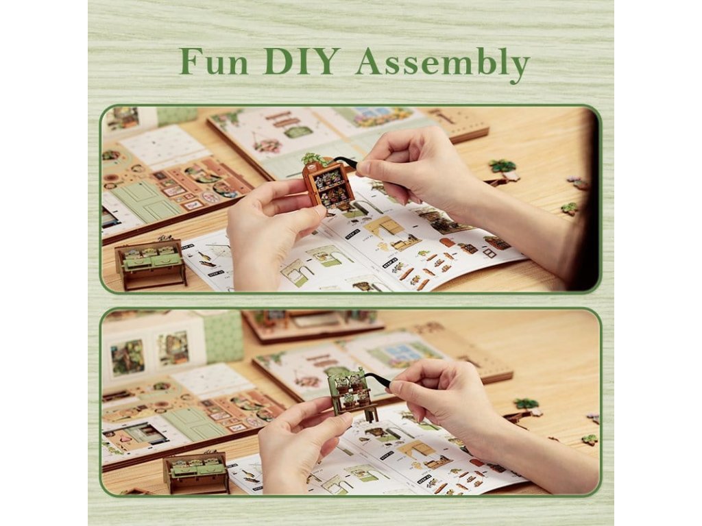 Tvořivá stavba modelů s duší - Miniatury domů CuteBee. Miniatury domů CuteBee vás zvou k zpomalení a plnému ponoření se do tvořivého procesu. Navržené jako detailní 3D dřevěné puzzle, jsou populárním tvořivým trendem pro děti, rodiny a dospělé s dětským srdcem, doporučené od 12 let. Proces stavby je dobře strukturovaný, logický a snadno srozumitelný, krok za krokem vás vede k nádherně řemeslně zpracovanému mini světu. Každá dokončená část přináší pocit úspěchu, což činí zážitek uklidňujícím a hluboce uspokojujícím - ideální protistresová aktivita bez obrazovek. Díky precizně laserem vyřezávaným dřevěným dílům, každý model nabízí prémiový pocit s čistými hranami a přesnými spojeními. Systém montáže Easy-Snap umožňuje spojení mnoha dílů s minimem lepidla, snižuje chyby a stavbu zpřístupňuje i začátečníkům. S širokou škálou témat, jako jsou útulné interiéry, fantasy světy, asijsky inspirované scény a kouzelná nastavení, podporují Miniatury domů CuteBee sběratelství, obchodování a dlouhodobé potěšení, nabízejí silnou prodejní a sběratelskou hodnotu. Poznámka: Baterie a dřevěné lepidlo nejsou součástí balení.