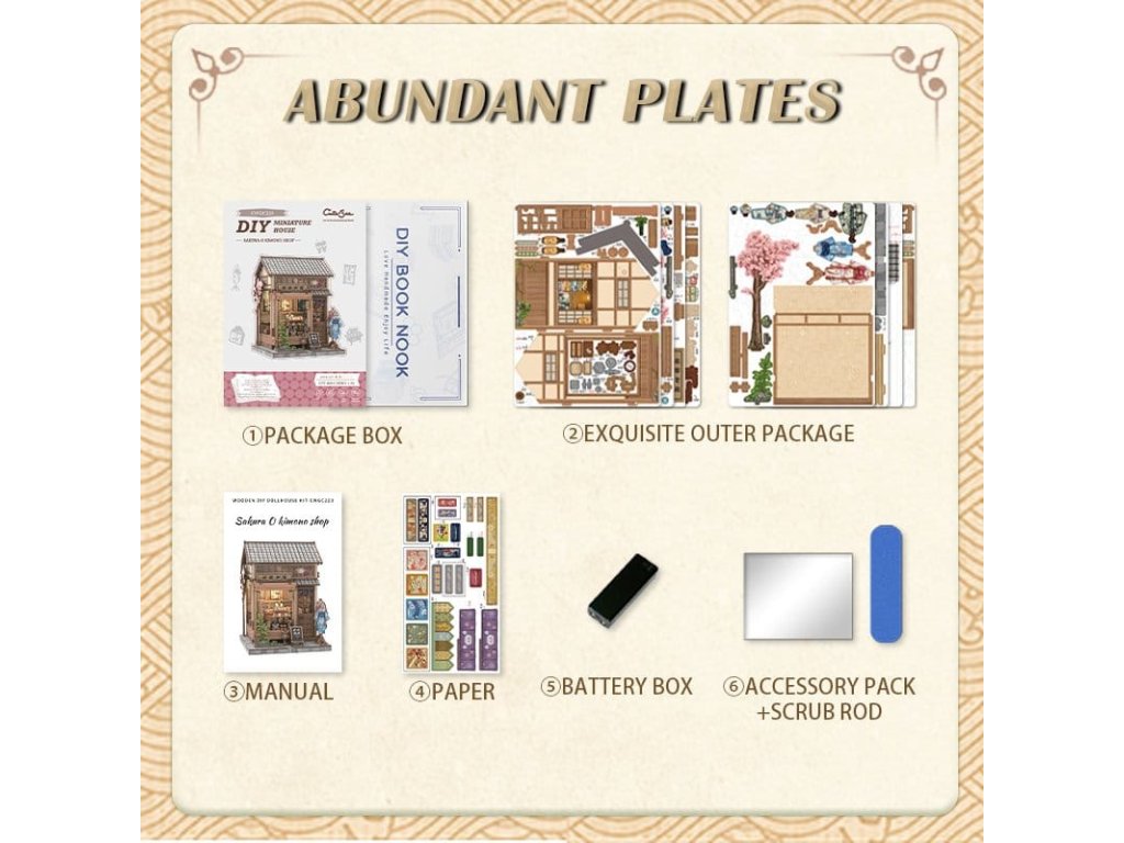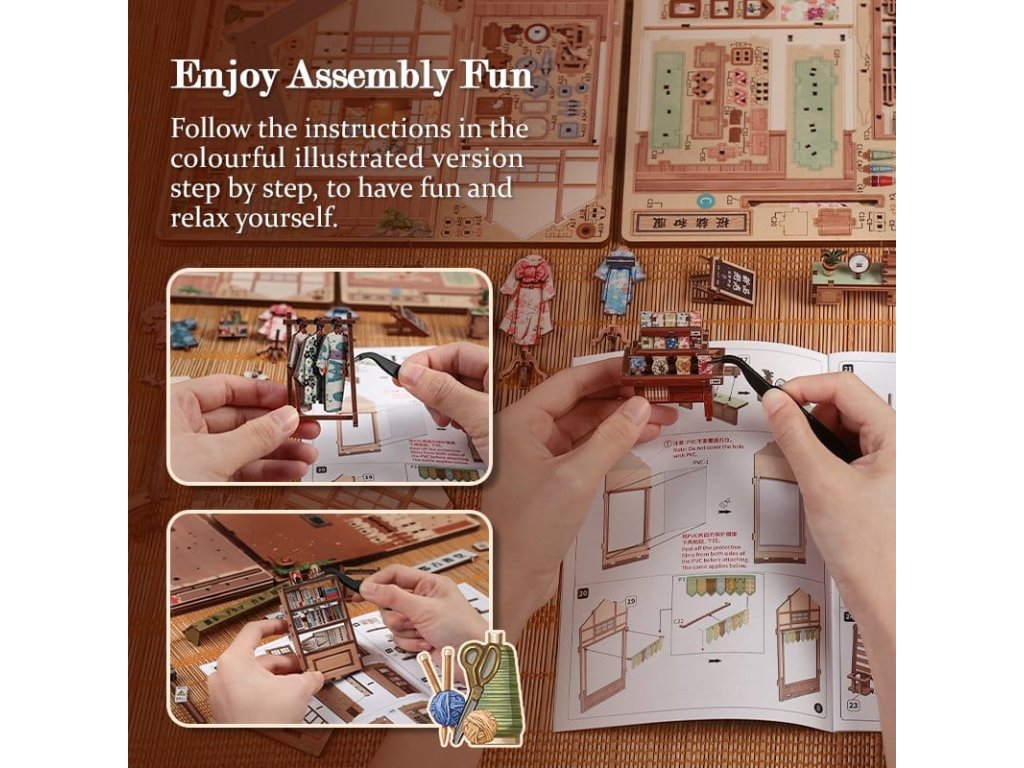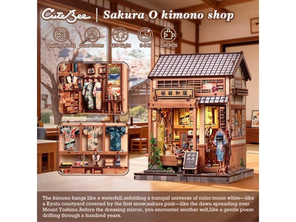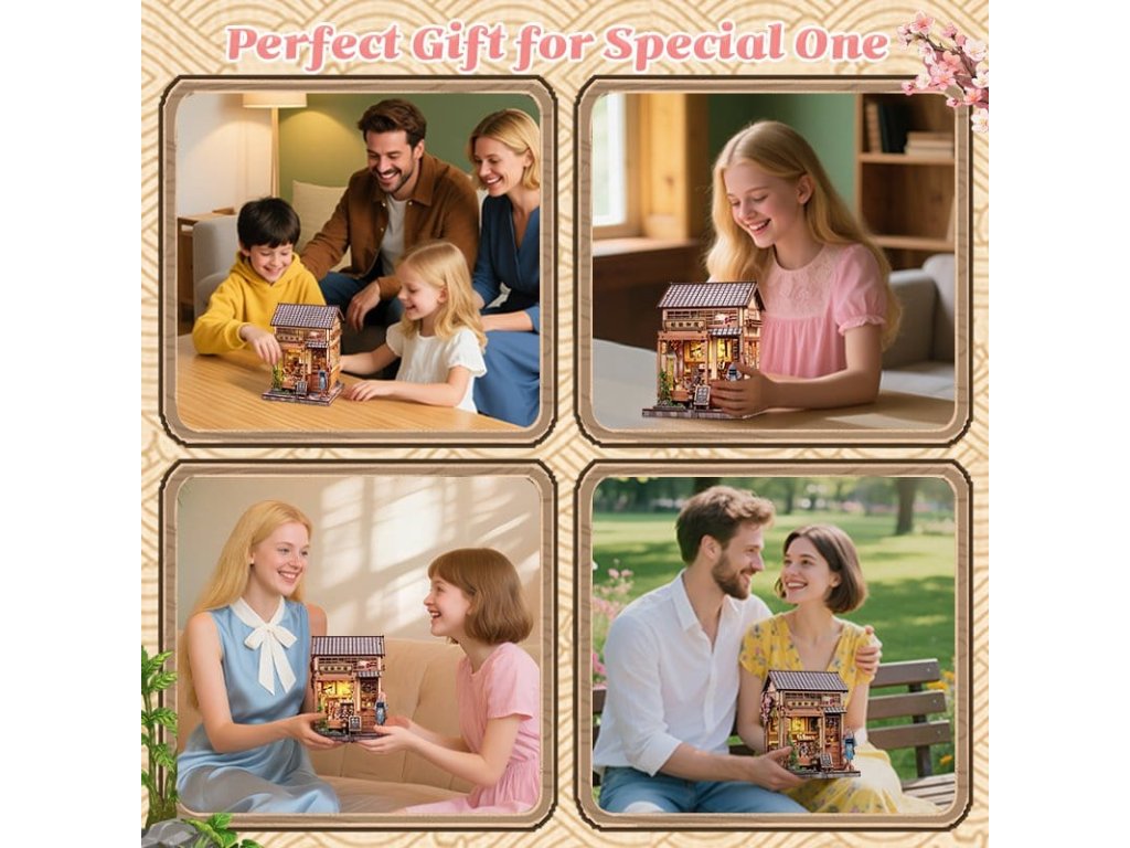Tvořivá stavba modelů s duší - Miniatury domů CuteBee. Miniatury domů CuteBee vás zvou, abyste zpomalili a plně se ponořili do tvořivého procesu. Navržené jako detailní 3D dřevěné puzzle, jsou populárním tvořivým trendem pro děti, rodiny a dětské dospěláky, doporučené pro věk 12 a více let. Stavební proces je dobře strukturovaný, logický a snadno srozumitelný, krok za krokem vás provede k nádherně vyrobenému mini světu. Každá dokončená část přináší pocit úspěchu, což činí zážitek uklidňujícím a hluboce uspokojivým - perfektní protistresová aktivita bez obrazovky. Díky preciznímu laserem řezanému dřevu má každý model prémiový pocit s čistými hranami a přesnými spoji. Systém montáže Easy-Snap umožňuje spojit mnoho dílů s minimálním lepidlem, snižuje chyby a činí stavbu přístupnou i pro začátečníky. S širokou škálou témat, jako jsou útulné interiéry, fantasy světy, scény inspirované Asií a kouzelná prostředí, podporují Miniatury domů CuteBee sběratelství, výměnu a dlouhodobé potěšení a nabízí silnou přepravní a sběratelskou hodnotu. Poznámka: Baterie a dřevěné lepidlo nejsou součástí balení.