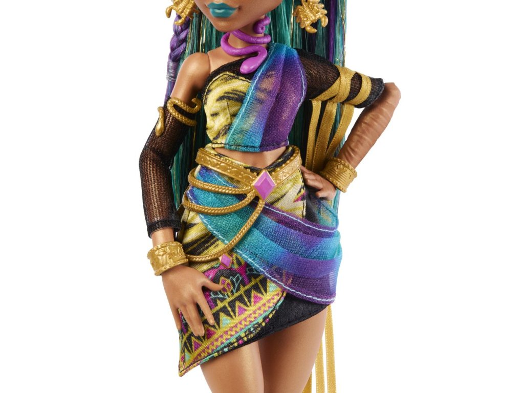 Seznamte se s Neferou De Nile! Starší sestra Cleo De Nile je královská mumie, která má doslova srdce ze zlata! Tato panenka z Monster High přichází se 7 děsivě stylovými doplňky a také se svým mazlíčkem – egyptským skarabem jménem Lavish. Děti od 4 let budou nadšené, že si mohou přidat nádherně děsivou Neferu De Nile do své sbírky Monster High! Panenka neumí samostatně stát. Barvy a vzhled výrobku se mohou lišit.