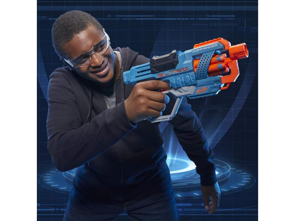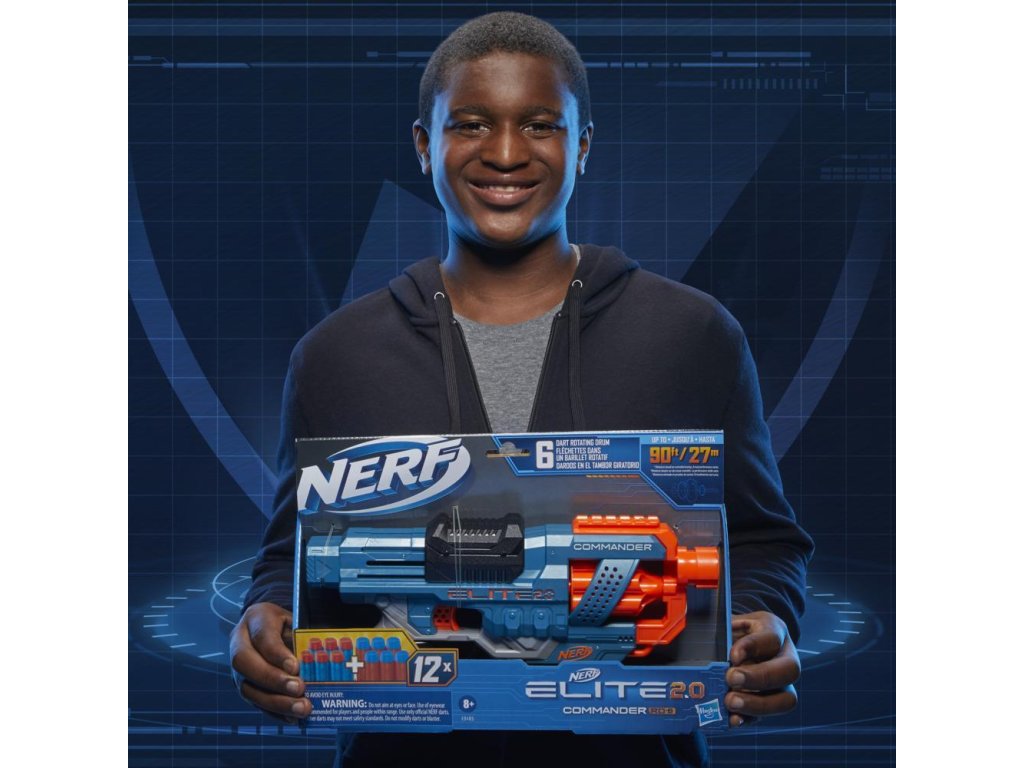 Připravte se na bitvu s blastery Nerf Elite 2.0, které mají zabudované možnosti přizpůsobení, takže je můžete vylepšovat a získat výhodu v soutěžích Nerf. Blaster Nerf Elite 2.0 Commander RD-6 má 3 taktické kolejnice, místo pro upevnění hlavně a místo pro upevnění pažby, abyste si mohli blaster přizpůsobit pro každou hru Nerf. Blaster má rotační buben na 6 šipek, takže můžeš vystřelit více šipek před opětovným nabitím. Vystřelte 1 šipku najednou nebo vypusťte všech 6 šipek rychle pomocí akce slam-fire. Nástavec hlavně a pažba nejsou součástí balení. Obsahuje 12 oficiálních šipek Nerf - dost na plné nabití bubnu a 6 šipek, které můžete mít připravené pro opětovné nabití. Vystřelí šipky až na vzdálenost 27 metrů. Doporučené brýle (nejsou součástí balení). Baterie nejsou potřeba.
