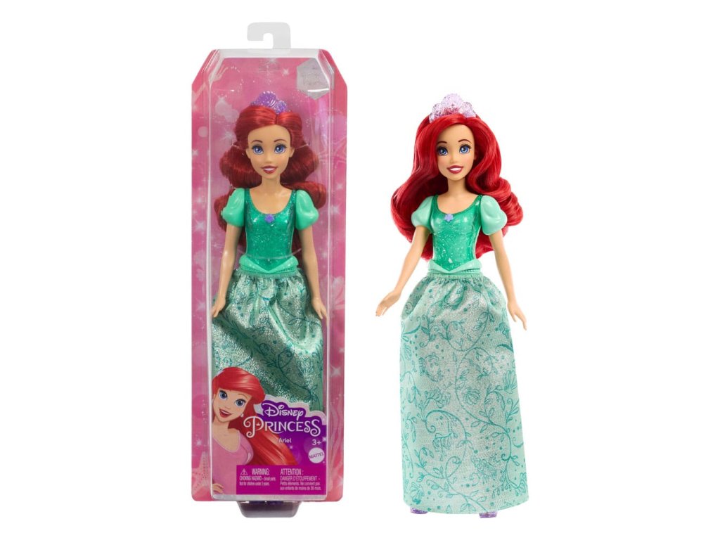 Seznamte se s touto panenkou Ariel, inspirovanou rozhodnou a svobodomyslnou princeznou z Disneyho Malé mořské víly. Tato pohyblivá módní panenka je zobrazena v lesklém oblečení a doplňcích, které zahrnují boty a tiáru. V jejím podpisovém vzhledu z filmu, je tato panenka Ariel připravena na jakékoliv dobrodružství! Panenka nemůže stát sama. Barvy a dekorace se mohou lišit. Obsahuje 1 panenku, 1 módu a 2 doplňky.
