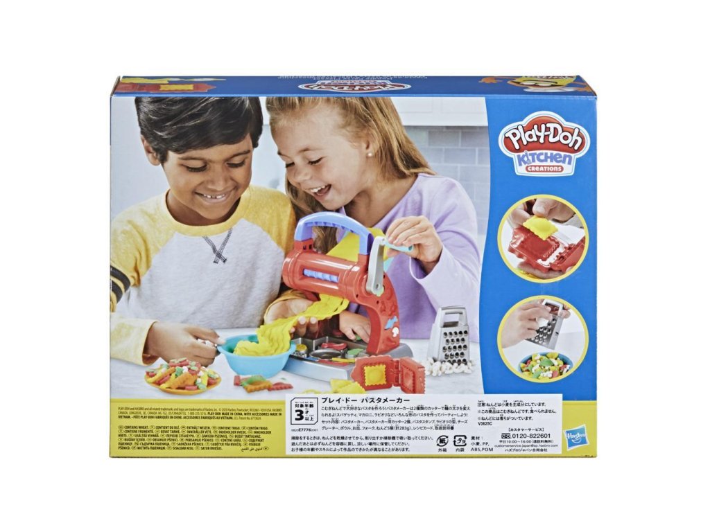 - Balení Play-Doh obsahuje těstovinový strojek a struhadlo na výrobku strouhaného sýru.