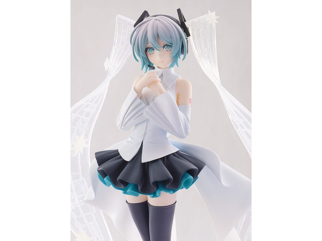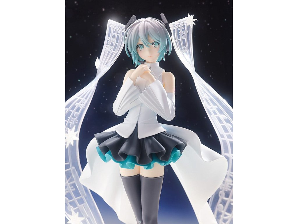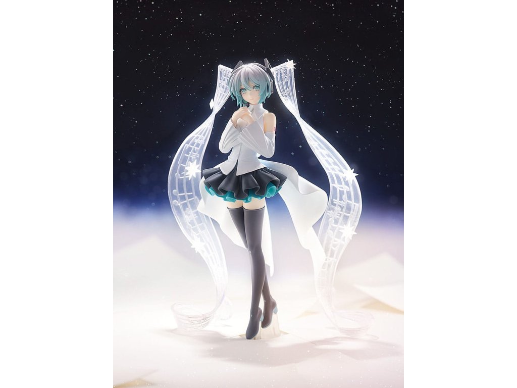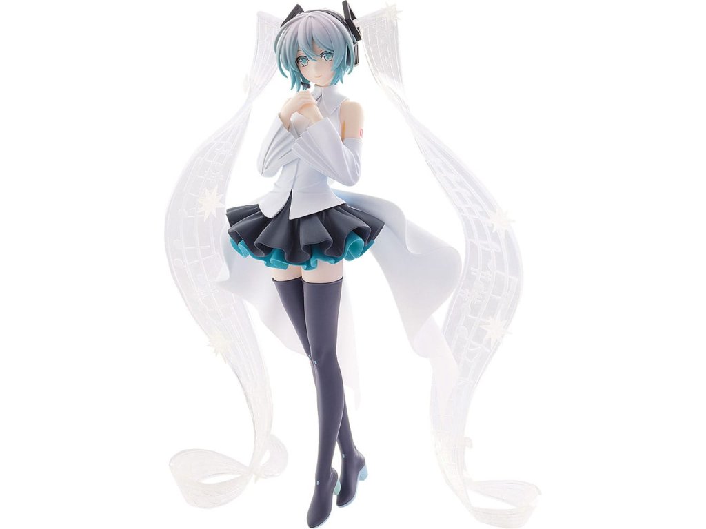 Nový přírůstek do POP UP PARADE! POP UP PARADE je série figurek, které jsou snadno sbíratelné za rozumné ceny a rychlými dodávkami! Každá figurka je obvykle vysoká okolo 17-18 cm a série nabízí široký výběr postav z populárních anime a herních sérií, s mnoha dalšími, které budou brzy přidány! Design je založen na Mikuinově vzhledu v hudebním videu pro 'Malé chybějící hvězdy', které je spoluprací mezi Sasanomaly a Rellou, ve kterém se její 'twintails' objevují jako hudební notové zápisy.