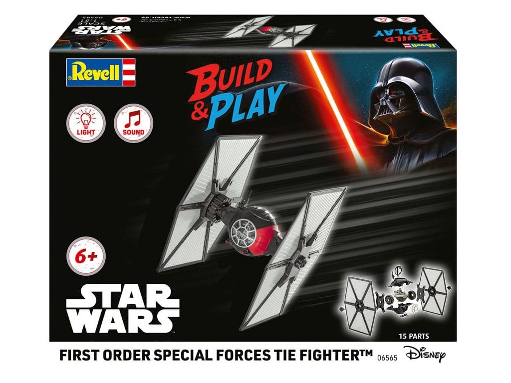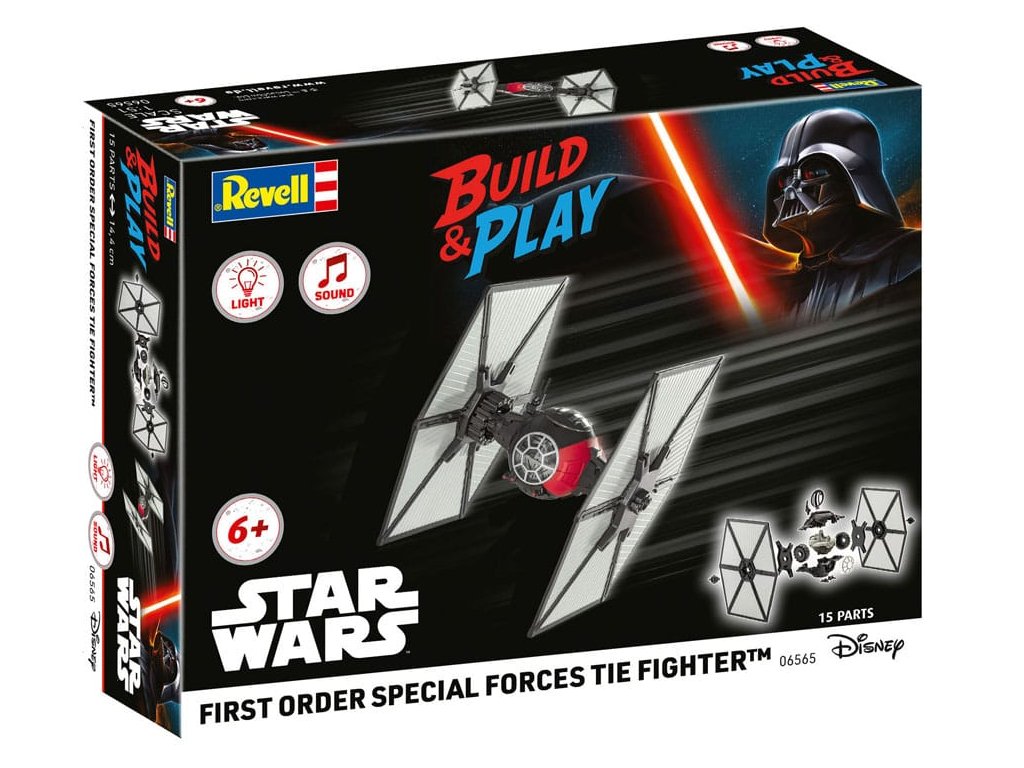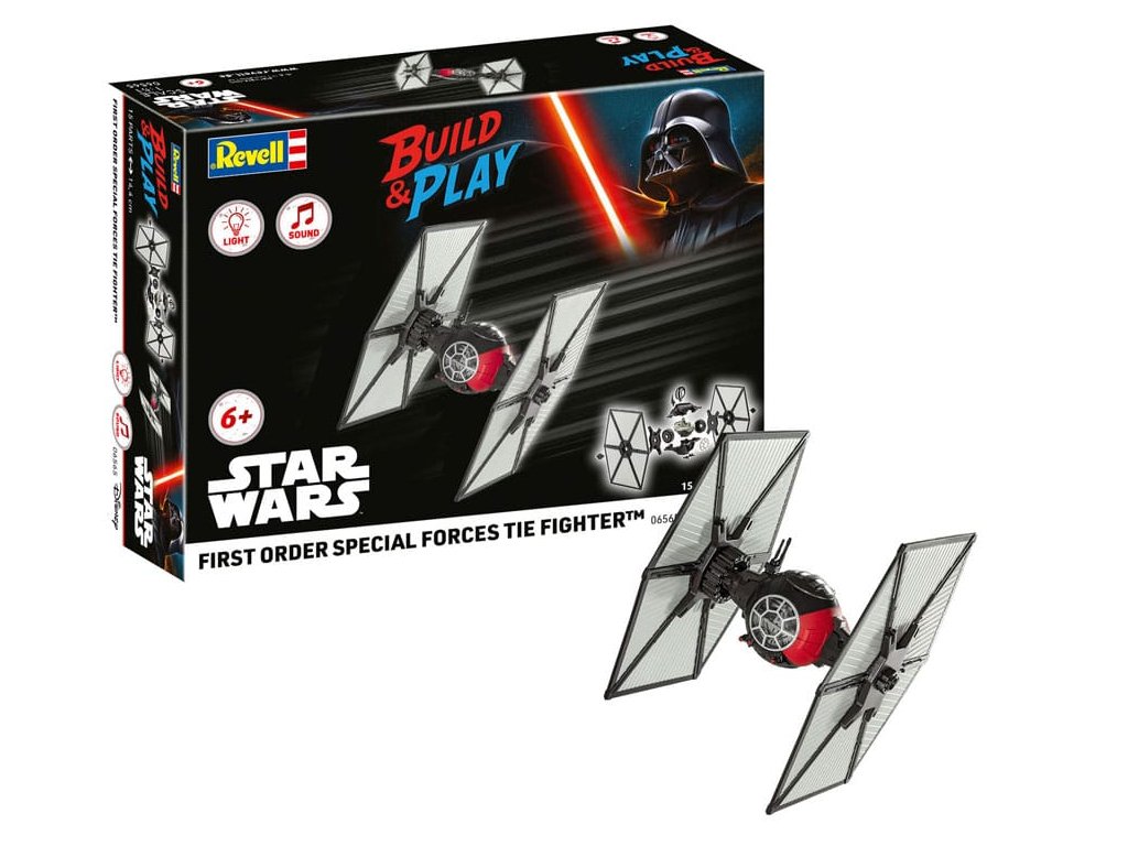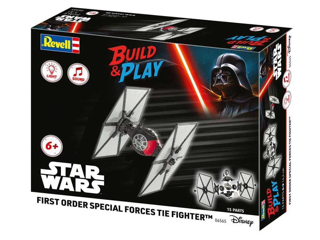 Měřítko: 1:51 Doporučený věk: 6+ Počet dílů: 15 Délka: 144 mm Revell 06565 TIE Fighter Speciálních sil Prvního řádu TIE Fighter Speciálních sil Prvního řádu přináší výjimečnou bojovou sílu Prvního řádu přímo do vaší sbírkové skříně. Evoluce klasického imperiálního TIE Fighteru, tento model kombinuje osvědčené inženýrství s nejnovější bojovou technologií - ideální pro každého, kdo chce rozšířit svou flotilu Star Wars o skutečně impozantní kousek. Balení již obsahuje 3x baterie LR44.