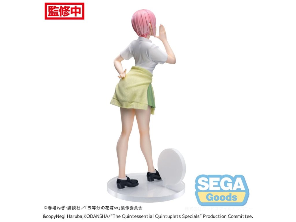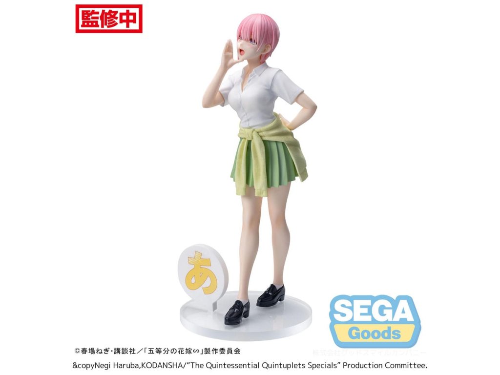 Z řady „Quintessential Quintuplets“ přichází tato socha z PVC. Měří 20 cm na výšku a je dodávána se základnou v potištěné krabici.