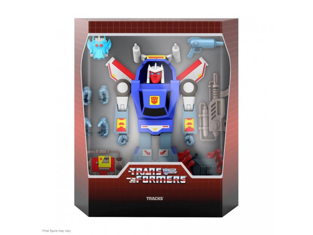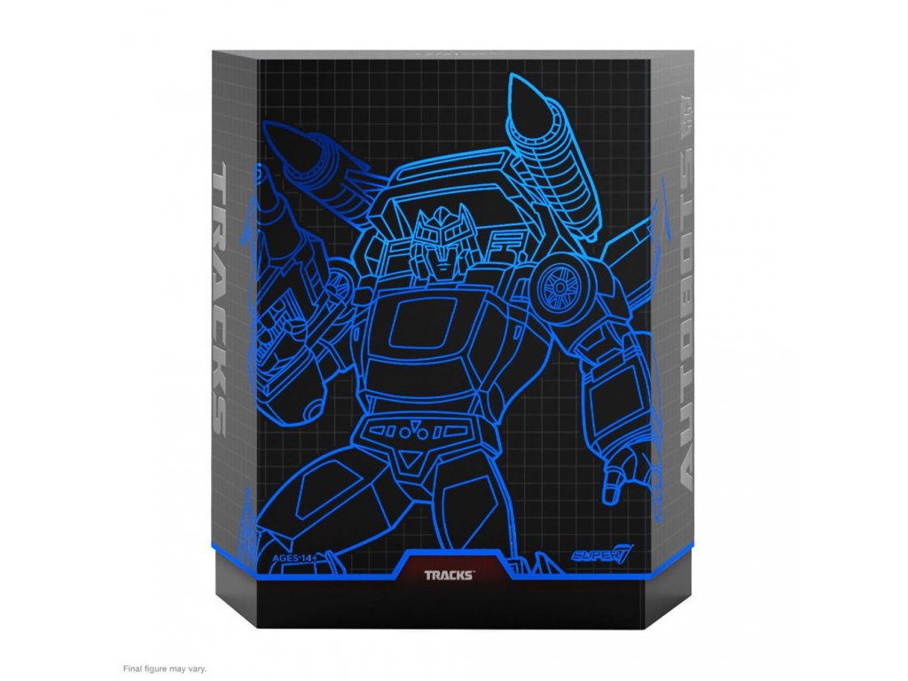 Tracks je naprosto úžasný! Stačí se ho zeptat, on vám to řekne! Vzhledem k tomu, že jeho mimorobotické transformace jsou sportovní automobil A stíhací letoun, je s ním těžké nesouhlasit. Figurka Tracks z řady Transformers ULTIMATES! má přesný lak na základě G1 a měnitelné hlavy a ruce a měří v plné výzbroji s křídly a raketami 7,5" na výšku. S arzenálem zbraní a dalších doplňků inspirovaných jak kresleným seriálem, tak vintage hračkou je tento Autobot diva vybaven až po děravé kapsy! S láskou ho nenávidět nebo ho nenávidět milovat, to je jedno, je klíčovým členem Autobotů a vzhledem k tomu, že jednou riskoval svůj život při obraně San Francisca, je Super7 velmi blízký. Příslušenství:- 2 x vyměnitelné hlavy (běžná hlava, hlava zlého cizího robota)- 6x vyměnitelné ruce- Tank (inspirovaný vintage hračkou)- Ion blaster (inspirovaný vintage hračkou)- Ion blaster (inspirován kresleným seriálem)- Přenosný rozhlasový přijímač blaster.