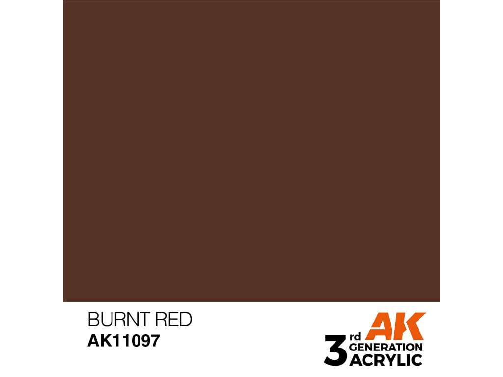 Akrylová barva Burnt Red od výrobce AK Interactive je vhodná pro nanášení štetcem i airbrushem. Akrylové modelářské barvy 3. generace (3Gen) jsou doposud nejpropracovanější recepturou akrylových barev. Barvy General Series mají vynikající krytí, úžasnou přilnavost a nové složení zabraňuje ucpávání trysky bez nutnosti barvy zdlouhavě rozmíchávat.Doplňkové parametry