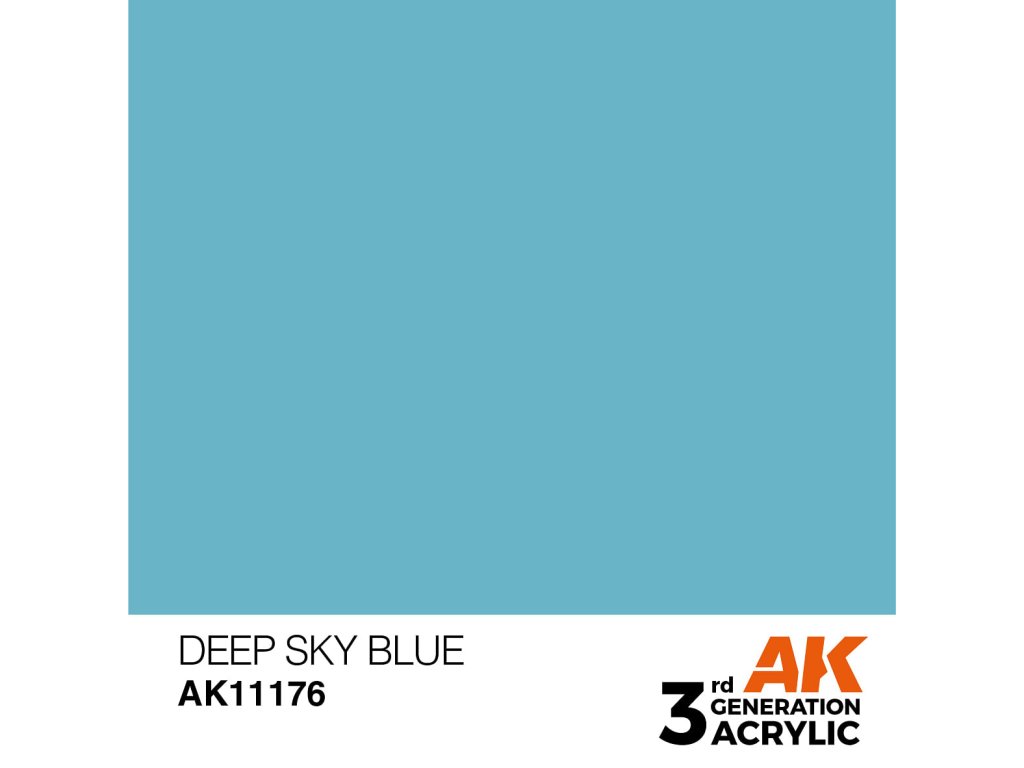 Akrylová barva Deep Sky Blue od výrobce AK Interactive je vhodná pro nanášení štetcem i airbrushem. Akrylové modelářské barvy 3. generace (3Gen) jsou doposud nejpropracovanější recepturou akrylových barev. Barvy General Series mají vynikající krytí, úžasnou přilnavost a nové složení zabraňuje ucpávání trysky bez nutnosti barvy zdlouhavě rozmíchávat.Doplňkové parametry