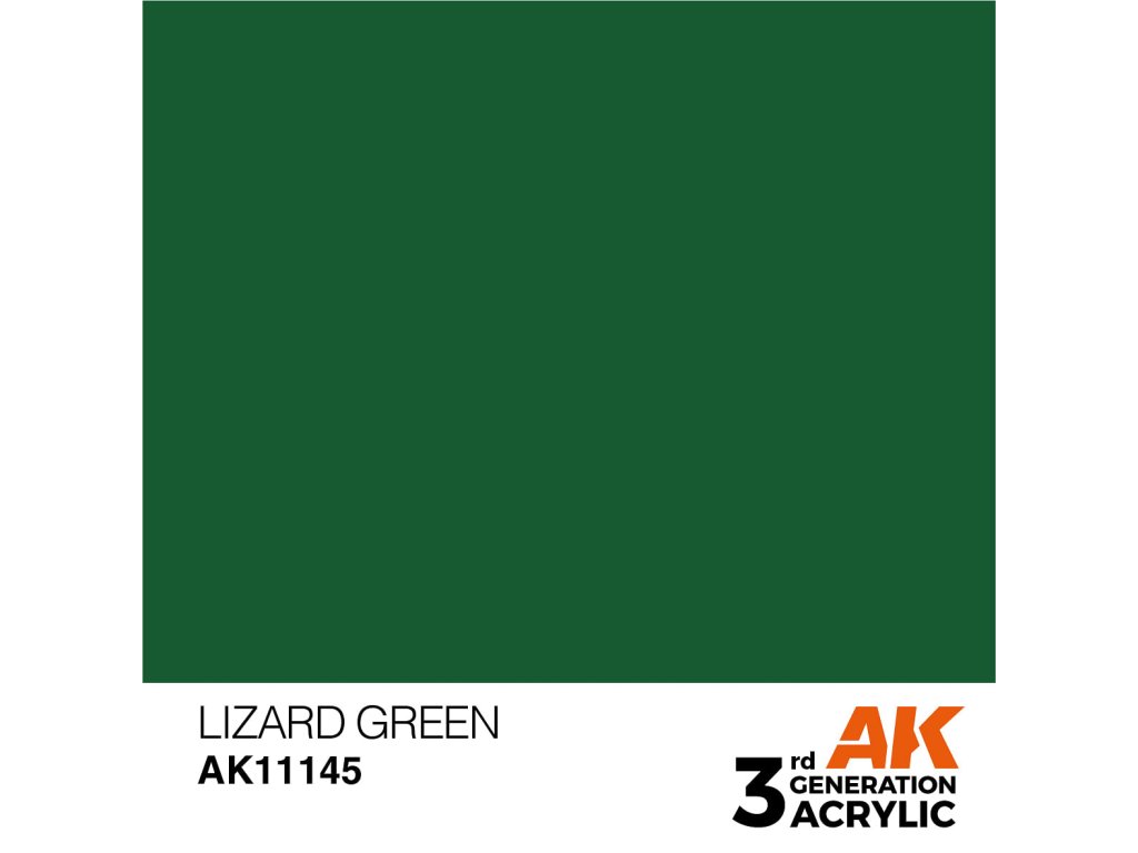 Akrylová barva Lizard Green od výrobce AK Interactive je vhodná pro nanášení štetcem i airbrushem. Akrylové modelářské barvy 3. generace (3Gen) jsou doposud nejpropracovanější recepturou akrylových barev. Barvy General Series mají vynikající krytí, úžasnou přilnavost a nové složení zabraňuje ucpávání trysky bez nutnosti barvy zdlouhavě rozmíchávat.Doplňkové parametry