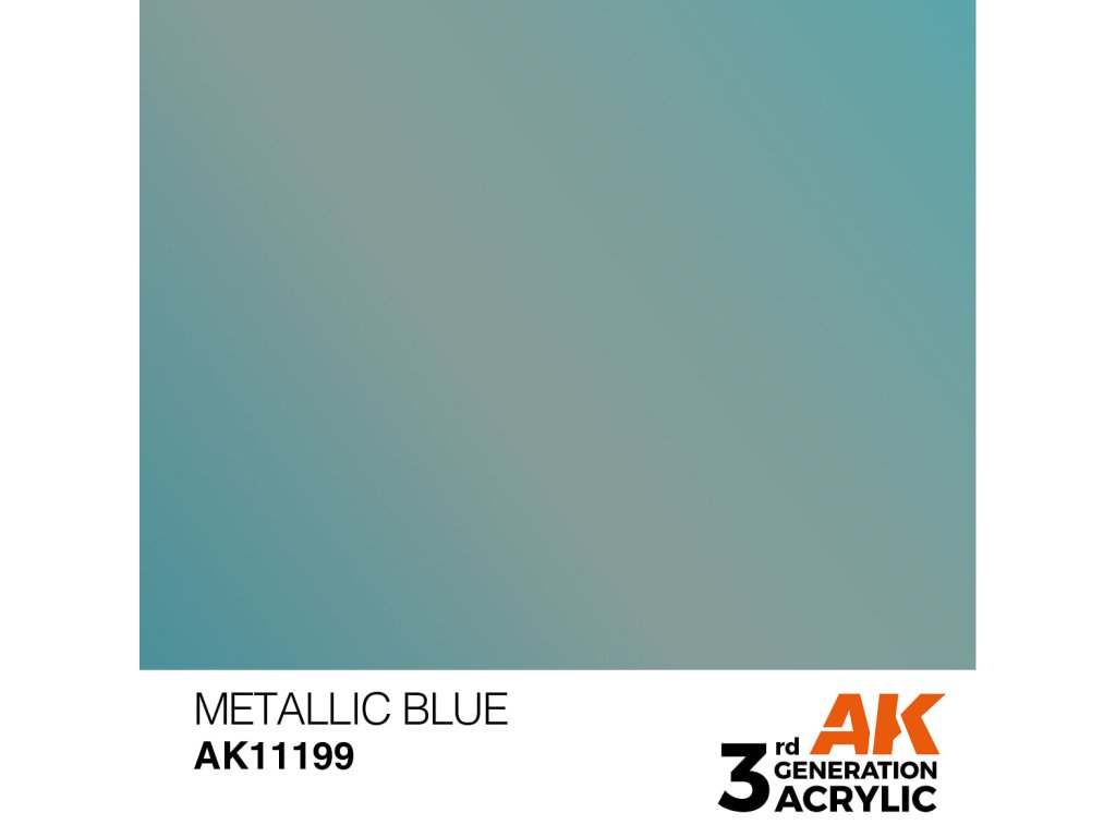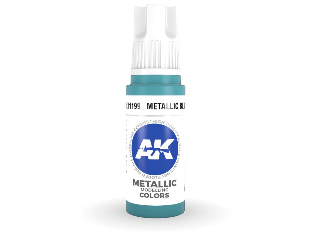 Akrylová barva Metallic Blue od výrobce AK Interactive je vhodná pro nanášení štetcem i airbrushem. Akrylové modelářské barvy 3. generace (3Gen) jsou doposud nejpropracovanější recepturou akrylových barev. Barvy General Series mají vynikající krytí, úžasnou přilnavost a nové složení zabraňuje ucpávání trysky bez nutnosti barvy zdlouhavě rozmíchávat.Doplňkové parametry