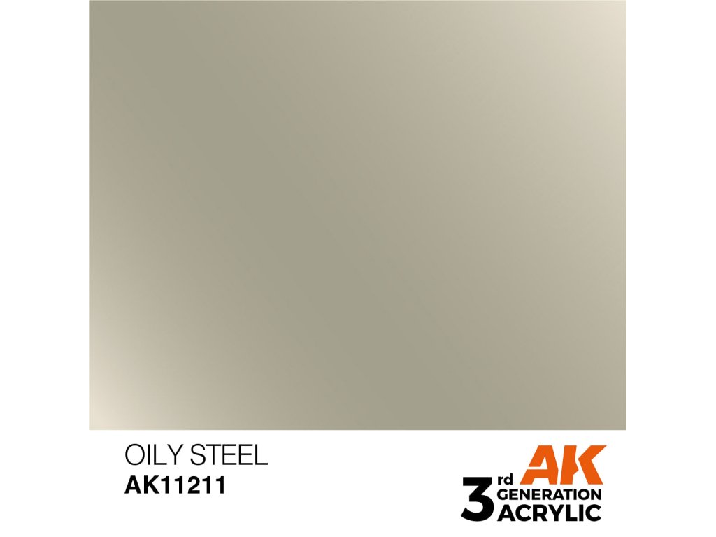 Akrylová barva Metallic Oily Steel od výrobce AK Interactive je vhodná pro nanášení štetcem i airbrushem. Akrylové modelářské barvy 3. generace (3Gen) jsou doposud nejpropracovanější recepturou akrylových barev. Barvy General Series mají vynikající krytí, úžasnou přilnavost a nové složení zabraňuje ucpávání trysky bez nutnosti barvy zdlouhavě rozmíchávat.Doplňkové parametry
