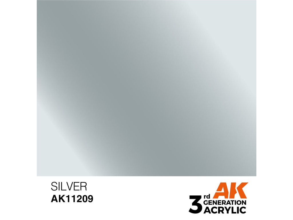 Akrylová barva Metallic Silver od výrobce AK Interactive je vhodná pro nanášení štetcem i airbrushem. Akrylové modelářské barvy 3. generace (3Gen) jsou doposud nejpropracovanější recepturou akrylových barev. Barvy General Series mají vynikající krytí, úžasnou přilnavost a nové složení zabraňuje ucpávání trysky bez nutnosti barvy zdlouhavě rozmíchávat.Doplňkové parametry