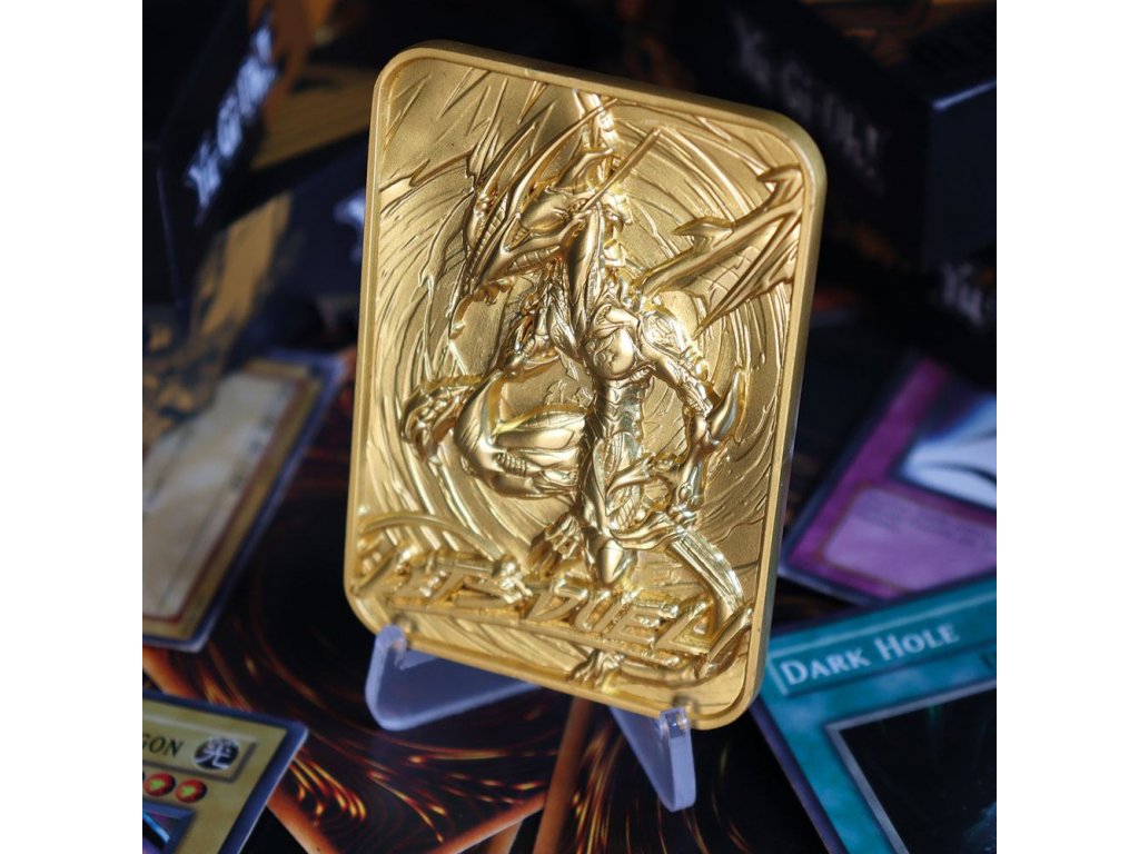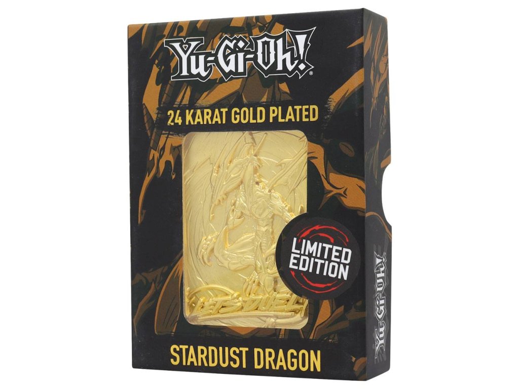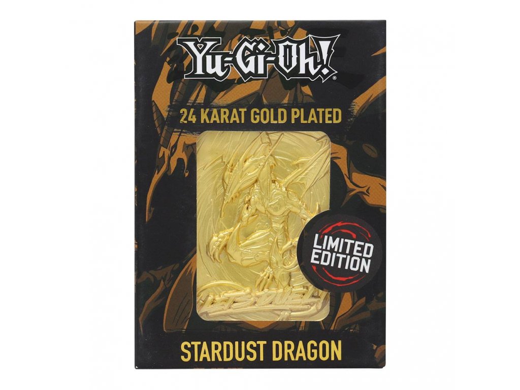 Ikonická synchro příšera Stardust Dragon je nyní k dispozici jako kovová karta potažená 24karátovým zlatem. Je limitována na 5 000 kusů po celém světě, reliéfní na obou stranách, individuálně číslovaná a velmi detailní. Tento sběratelský kousek je dodáván v nádherné prezentační krabičce a je vybaven stojánkem.